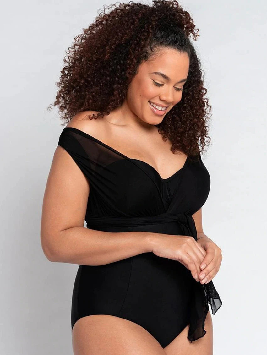 Wrap it, twist it, tie it! The style possibilities are endless with Curvy Kate’s Wrapsody One Piece Bandeau Swimsuit. Use the lightweight mesh panels to make this swimsuit your own. Made with ‘Xtra Life Lycra’ this bandeau style swimsuit will retain it’s shape, heat resistance, and chlorine and sun resistance longer than before!