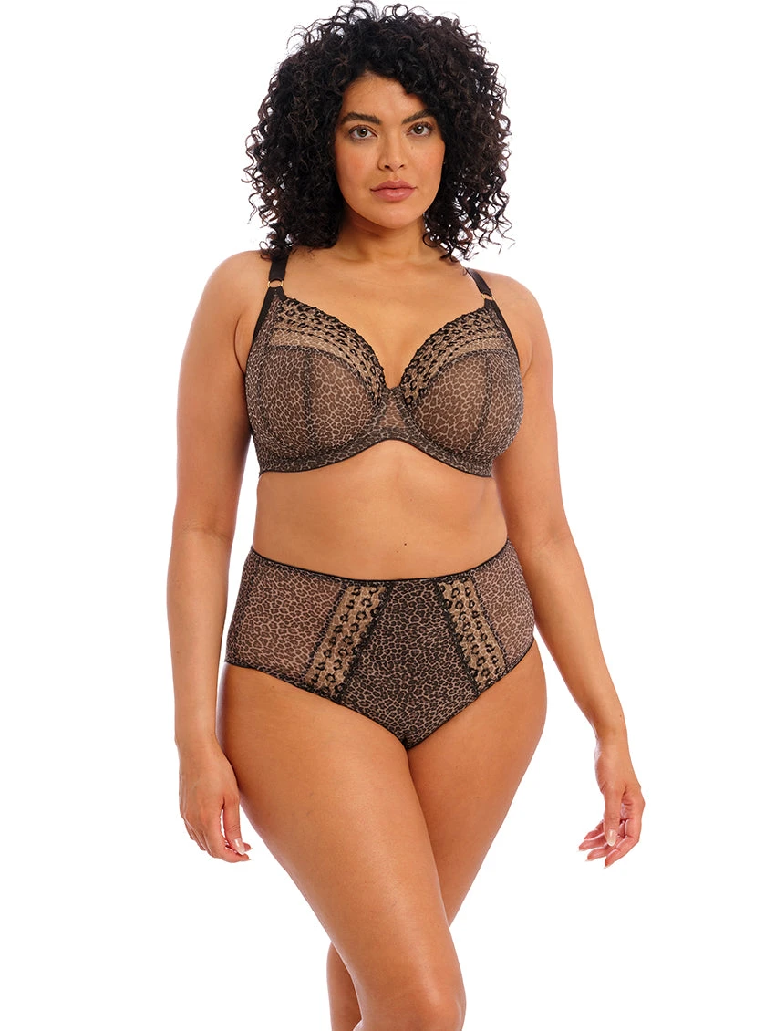 Matilda is a classic Elomi style that provides the support we all know and love, with an added twist of mesh material throughout to elevate it’s overall look and feel. This plunge style underwire bra features embroidery along sheer top panels of the cups and silvertone metal rings at base of straps for added luxury.
