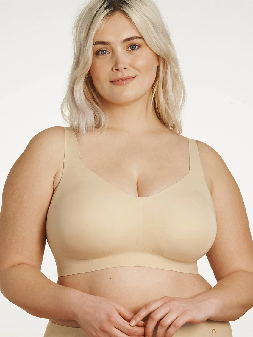 This unique wire free design feels weightless while providing lift and support for everyday wear. It features a hook and eye back closure, adjustable straps and removable padding. Completely smoothing and disappears under even the most form-fitting clothing. Pain-free lift, all-day comfort, and very likely to become your favourite bra.