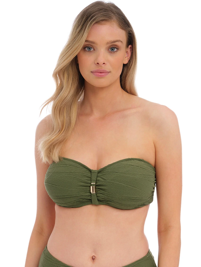 Fantasie’s Beach Waves Bandeau Bikini Top features a subtle wave textured fabric. The Beach Waves Bandeau Bikini Top is the perfect piece to complete your swimwear look. Lightly padded cups provide support and a smooth shape while detachable, multiway straps allow for additional over the shoulder and cross back styling options.