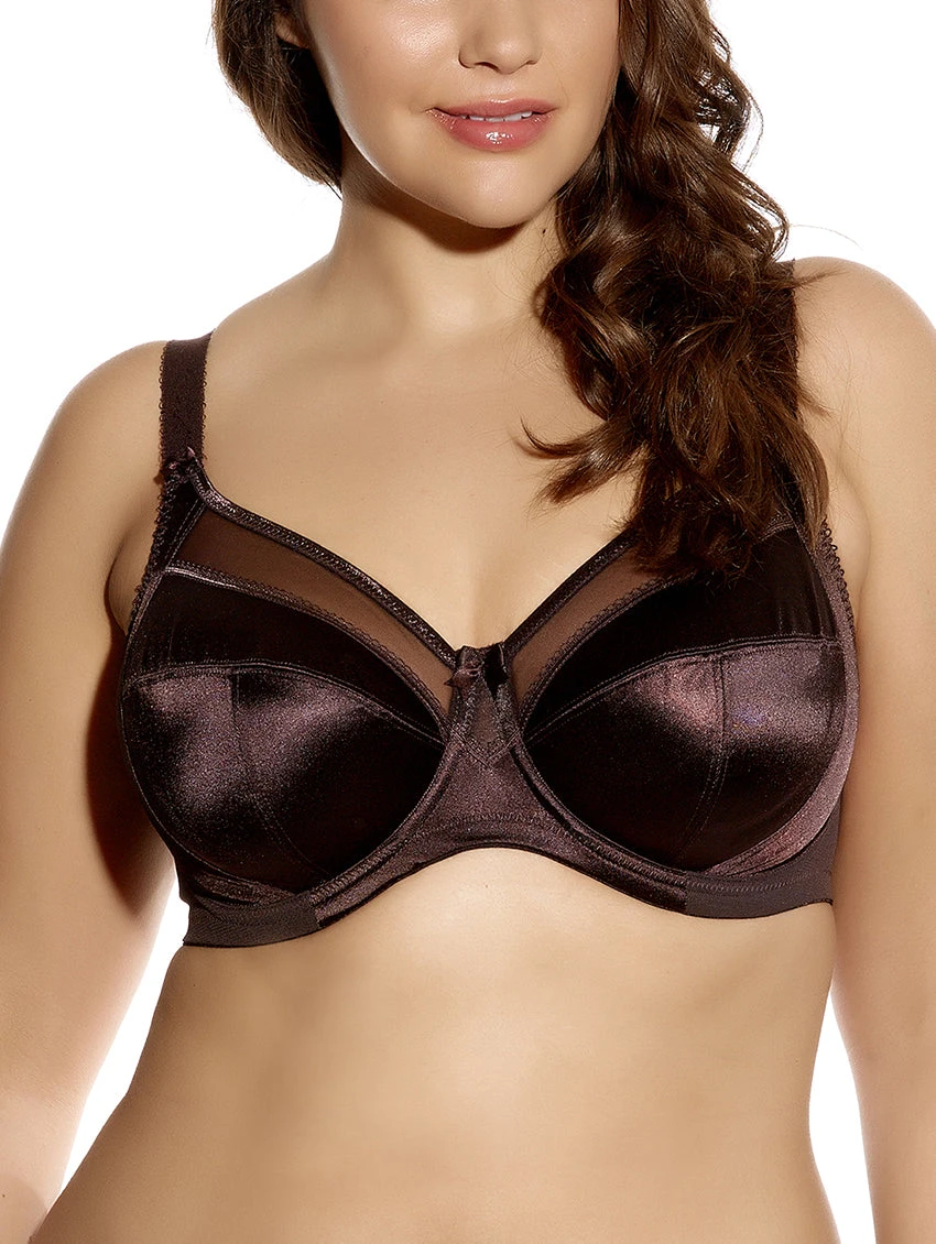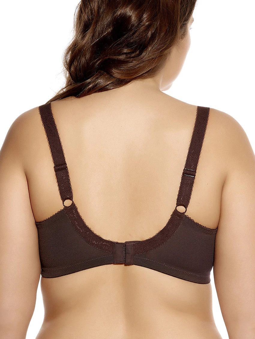 With a 5-part cup construction that offers maximum support and shaping, this style is a very uplifting basic, ideal for the full figured woman. Detailed with non-stretch satin simplex, shimmer threadwork, mesh and picot trim, this style offers a lifted silhouette with flat seams that are barely noticeable underneath clothing.