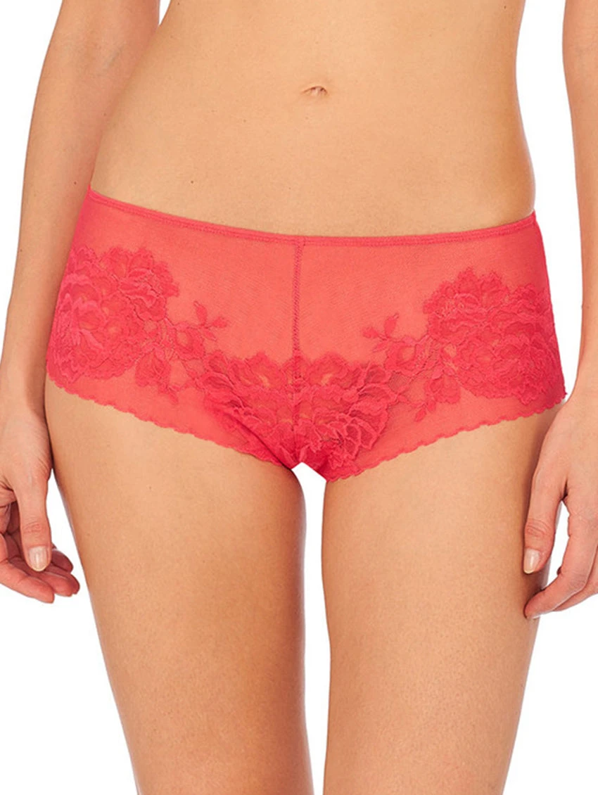Finish off your Natori set with the Floral Girl Brief, featuring a scalloped edge lace with no elastic to eliminate uncomfortable dig-ins.