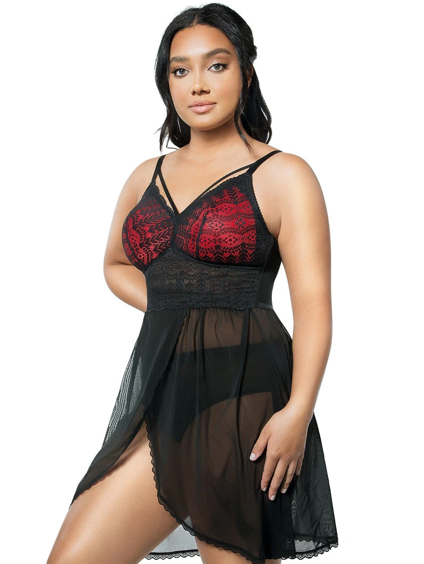 This stunning chemise by Parfait is a one of a kind piece! With a longline underbust for smoothing and support, paired with delicate lace and a pop of red in the cups.