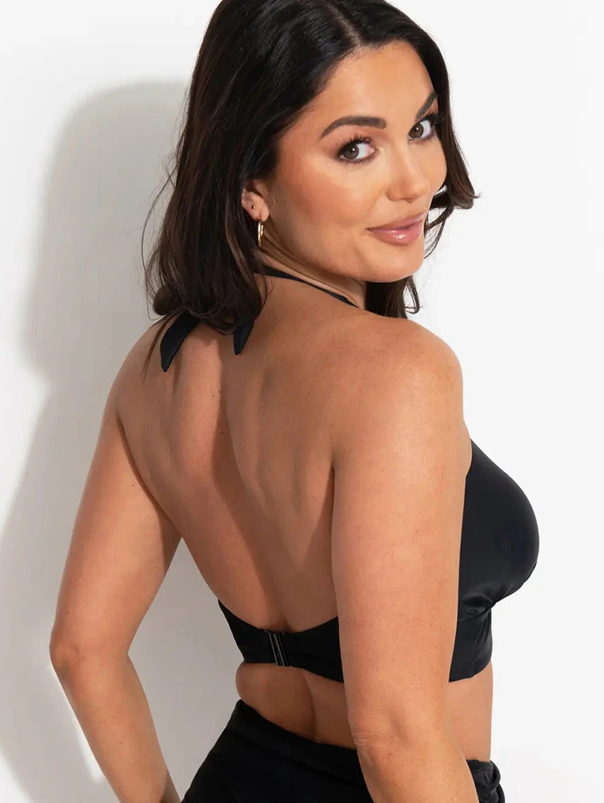 This Halter Bikini Top from Pour Moi is a sexy spin on a classic style. The longline band gives great security while the plunging neckline and triangle cups give support while showing off your assets.