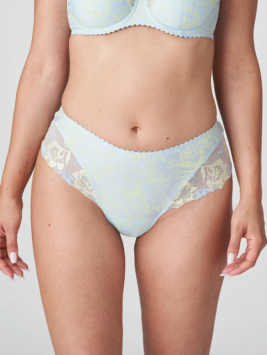 The PrimaDonna Nuzha Luxury Thong is a stunning burst of Spring energy. The pastel printed fabric accents the gorgeous citrussy embroidery on the leg openings to really flatter the hips.