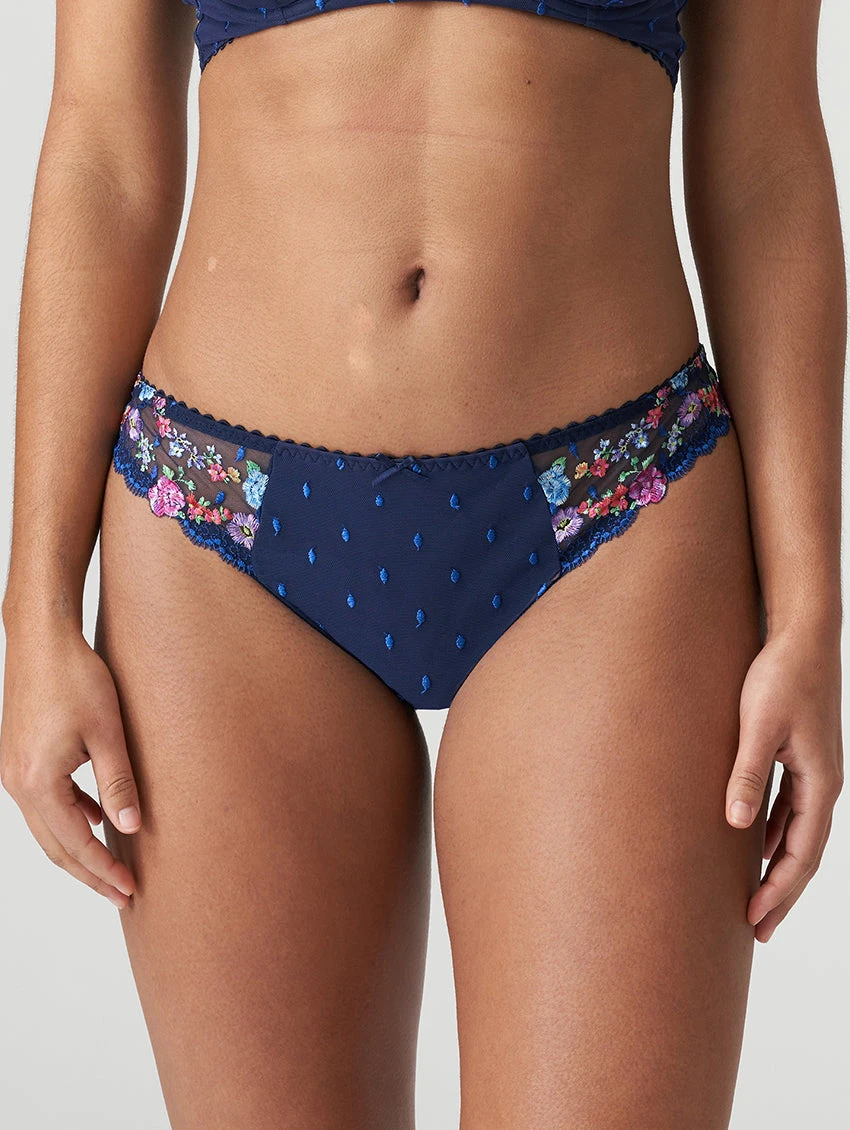 This classic brief features colourful embroidery front panels and an opaque full coverage pack. The perfect coordinate to your PrimaDonna Sedaine Bra. The polka dot tulle adds a little something special to this beautiful style!