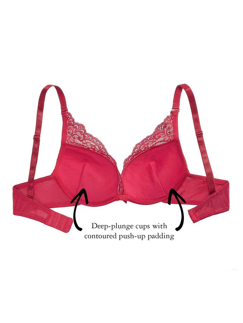 The Lucia bra, one of The Little Bra Company’s bestselling petite push-up bras, is universally flattering for smaller figures. The sexy, deep-plunge push-up bra helps petite women fill out the latest fashions. The all-over lace bra is feminine and fashionable, but since the lace lays flat on the body, it is functional for every day wear. The contoured cup bra has convertible straps, so it can be worn in multiple ways. “Lucia” is so popular, she has been featured in InStyle Magazine and The New York Times!