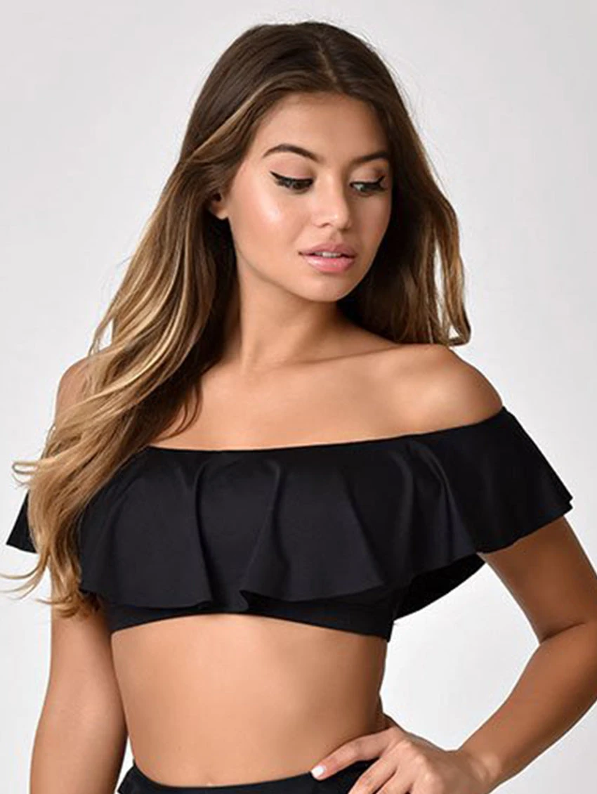 Ruffle a few hearts, darling! The elegant yet sultry Ramona Swim Top from Unique Vintage is cast in a glamorous black and boasts gorgeous ruffled drapery. Lined in soft mesh, an elastic band keeps you secure while the fluttering embellishment summons grace and sophistication. Who could say no?