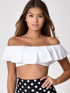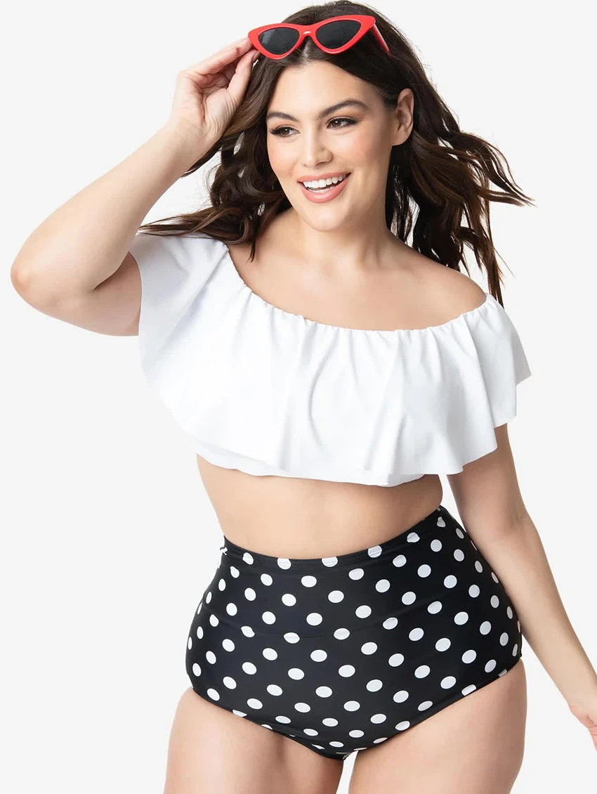 Ruffle a few hearts, darling! The elegant yet sultry Ramona Swim Top from Unique Vintage is cast in a glamorous black and boasts gorgeous ruffled drapery. Lined in soft mesh, an elastic band keeps you secure while the fluttering embellishment summons grace and sophistication. Who could say no?